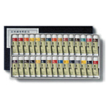 セット内容:チューブ絵具24色、膠液、鉄鉢金・銀、チューブ入胡粉#6、明礬、彩色筆、平筆、面相筆、絵皿2枚、色紙、化粧箱入 |